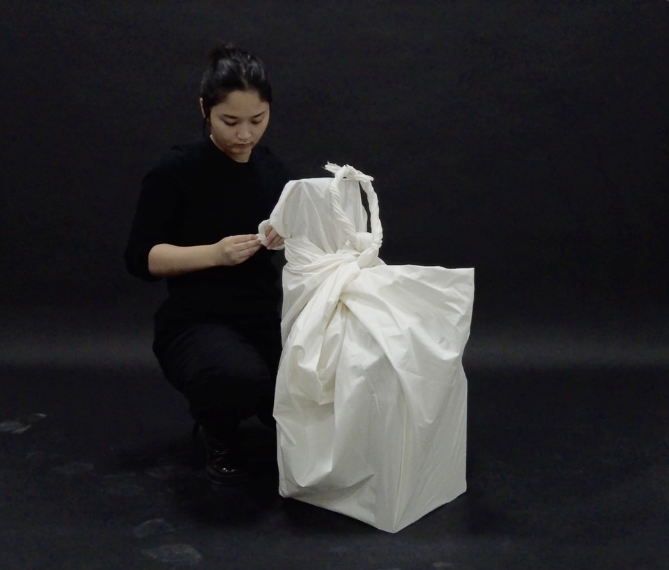 A bindle is a cloth and a method with which a traveler can transport their only, or most necessary belongings from one place to another. Using the context of the graduation as a rite of passage, objects left behind by peers already gone, are reappropriated and reimagined as containers of care and remembrance, forming a counter-narrative to the bindle’s traditional purpose.