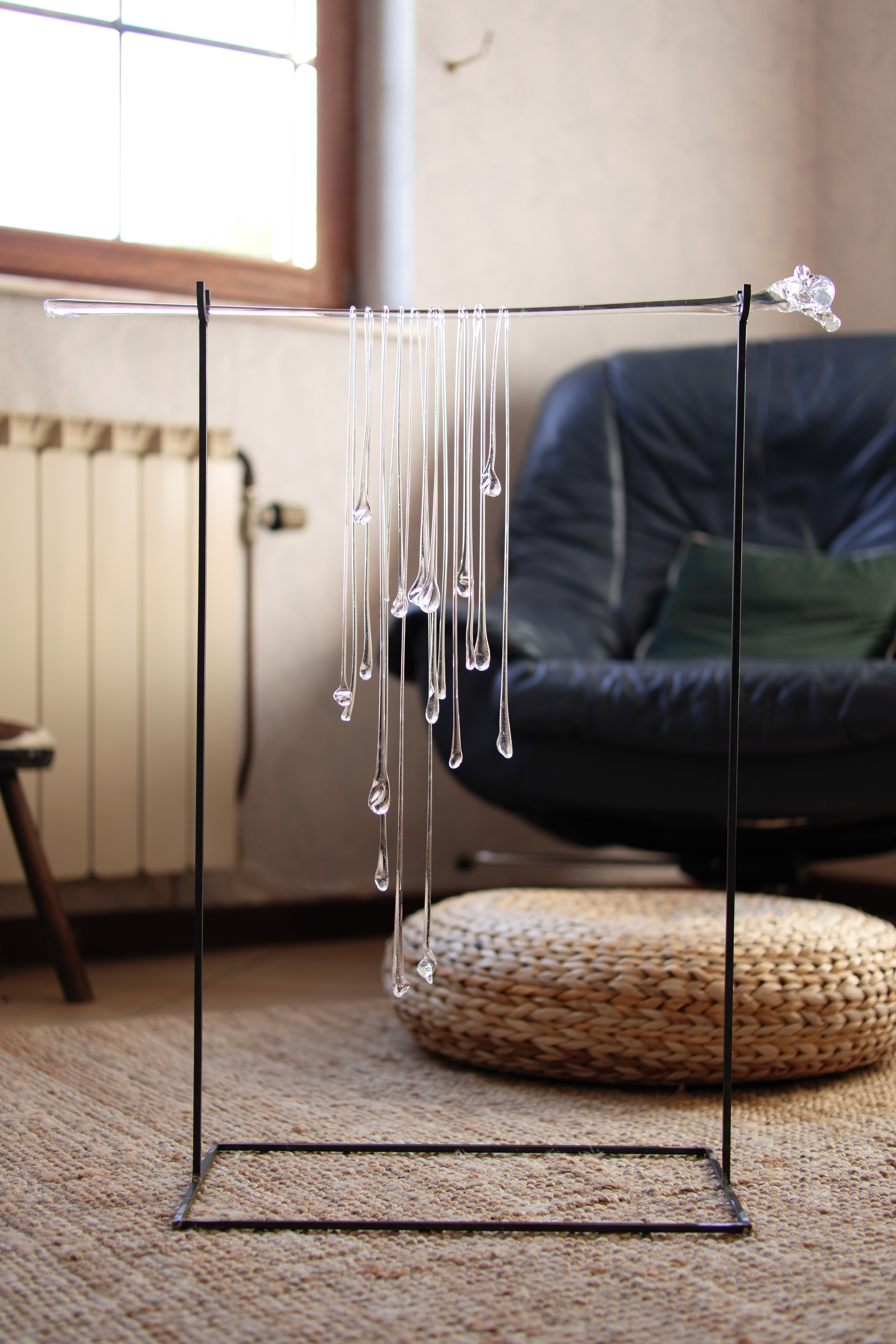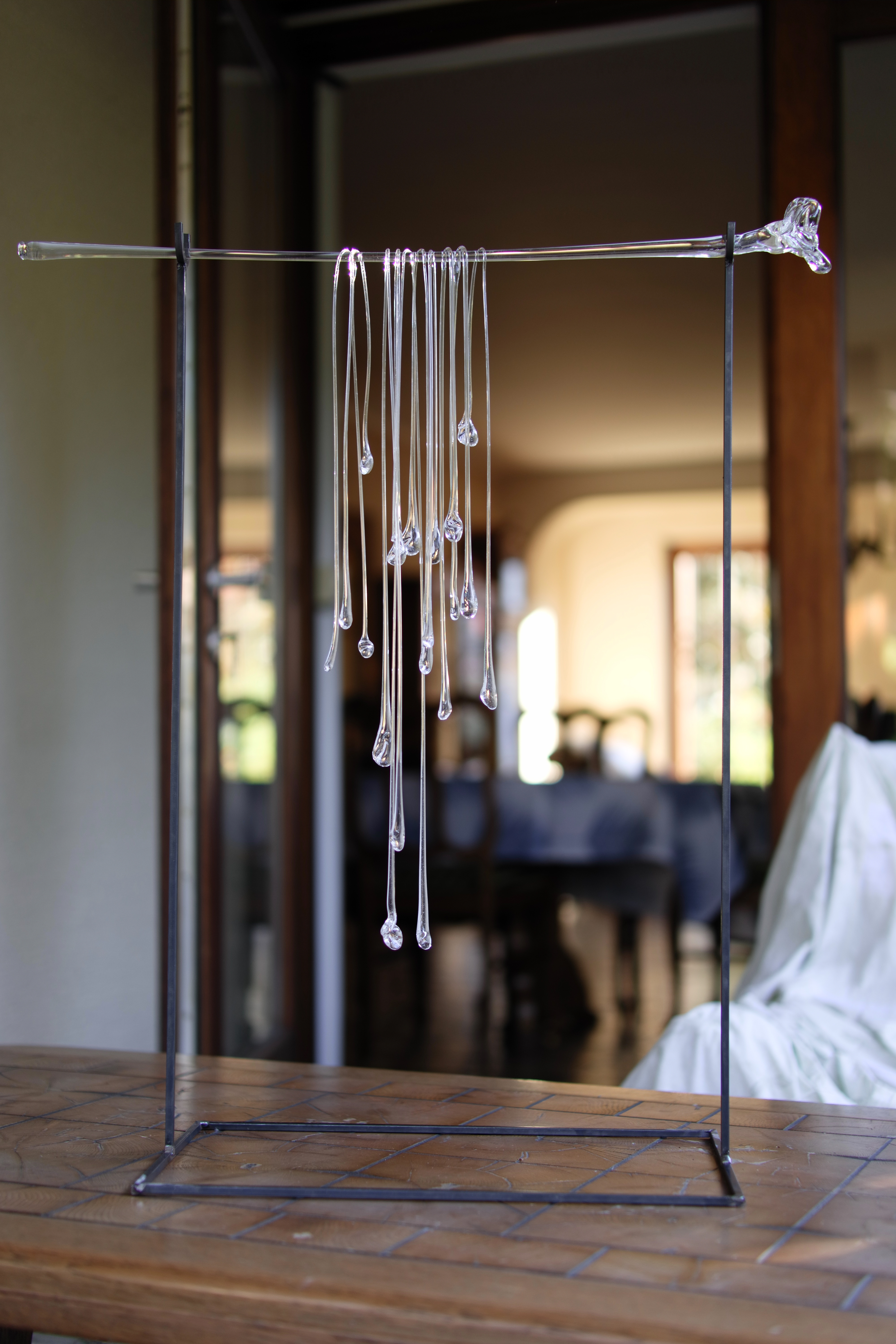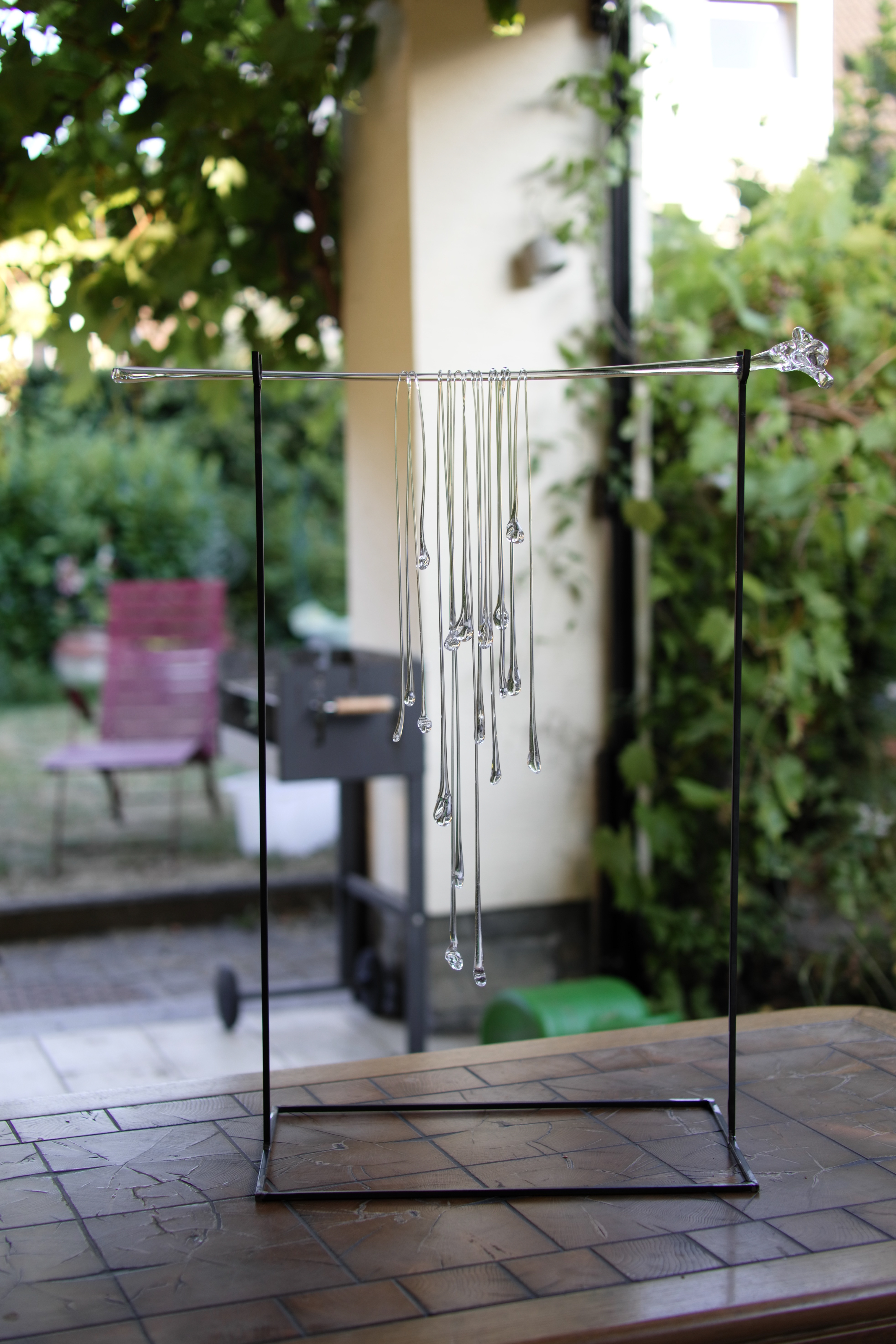 Working with glass, paralells the ephemeral nature of this ritual, as well as the execution of it. The fragile glass strings on the glass flower are to be gifted from one participant to another, along with blessings and